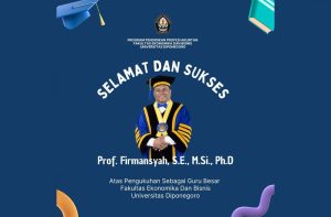Prof. Firmansyah, SE, MSI, PhD, Dosen Fakultas Ekonomika dan Bisnis Universitas Diponegoro, Rabu 6 Desember 2023 dikukuhkan sebagai Guru Besar ilmu ekonomi. Upacara pengukuhan guru