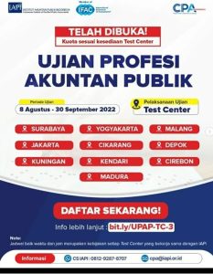 Registration for the Public Accountant Professional Examination (UPAP) is re-opened. Implementation of UPAP this time through Test Centers in several cities: Surabaya, Yogyakarta, Malang, Jakarta,